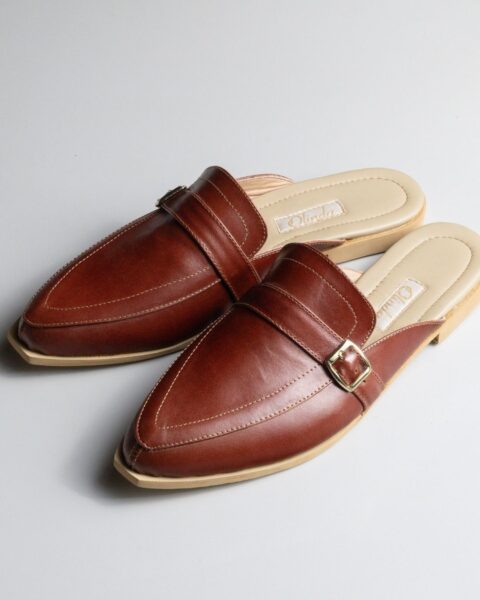 Mule cuero marrón liso, con pasador, taco 1 grueso