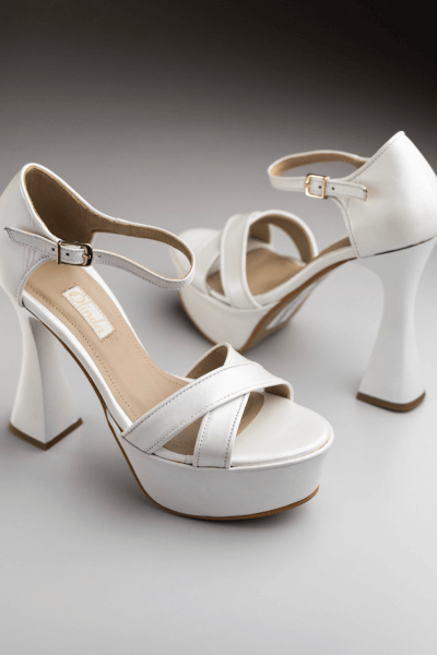 SANDALIA blanco nacarado, TACO 12 semi FINO, plataforma ancha
