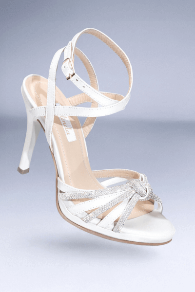 SANDALIA CLOUD CREMA c/ detalles TIRAS STRAS PLATEADO, taco 10 FINO