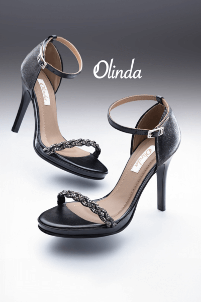 SANDALIA CUERO NEGRO, CAPELLADA DE STRASS TRENZADA, CON MINI PLATAFORMITA, TACO 10FINO