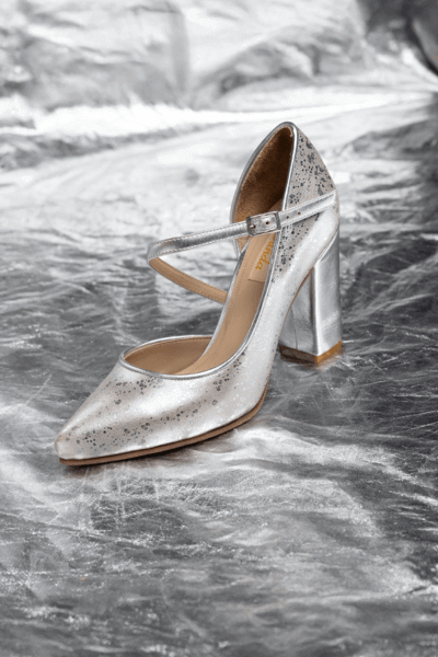 stiletto PLATEADO – taco 8 grueso